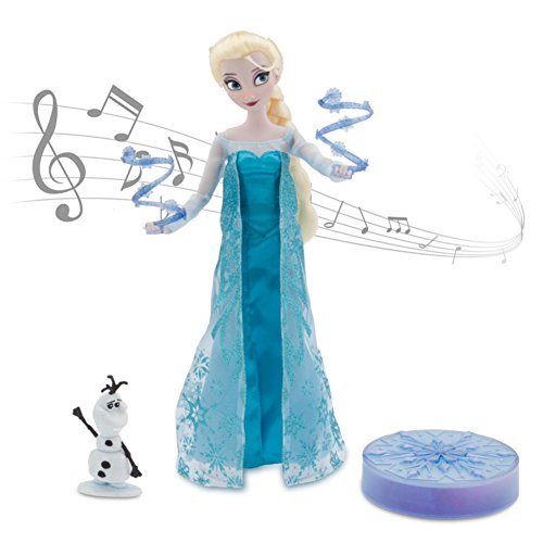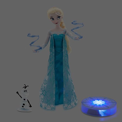 -. Binding : Toy -. Brand : Disney -. EAN : 4516756191573 -. Feature : Parallel import goods / Set includes: Elsa Singing Doll two complete costumes light-up snowflake disc two removable '' icy power '' accessories and Olaf figurine / Twirl Elsa's hand to hear her sing Let it Go / Detailed costumes with capes Satin and glitter accents / Press button on snowflake to see color change LED lights -. Label : Disney (Disney) -. Manufacturer : Disney (Disney) -. ProductGroup : Toy -. ProductTypeName : TOYS_AND_GAMES -. Publisher : Disney (Disney) -. Studio : Disney (Disney) -. Title : Disney Disney Frozen Anna and The Snow Queen Elsa Elsa Deluxe Singing Doll Set Olaf - 11 inches Sings & Glows [parallel import]