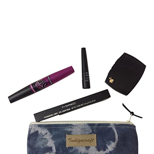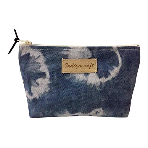 Indigo Craft - Cosmetic Beauty and Makeup case Bag Travel Organizer Pouch for women purse Unique Handmade in Indigo pattern style ( Round Pattern)