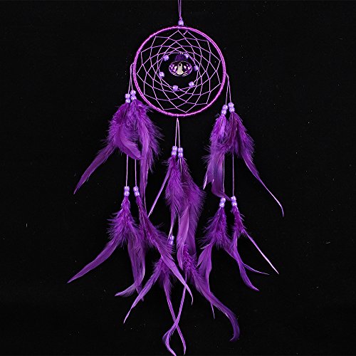 QOCOO Traditional Handmade Wind Chime in Ring Dream Catcher with Purple Natural Feathers, 19.7" Home Car Decoration Beautiful Wall Window Door Hanging Ornaments, Great Craft for Room or Gift