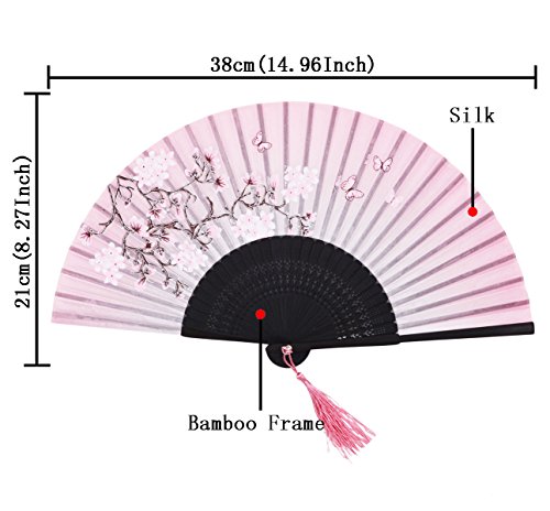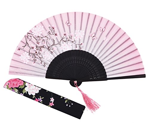 Amajiji 8.27"(21cm) Hand Held Folding Fans - With a Fabric Sleeve for Protection for Gifts- Chinese / Japanese Vintage Retro Style,Women Hand Folding Fans Gift Fan Dance Fan Wedding Fan (LXHS-27)