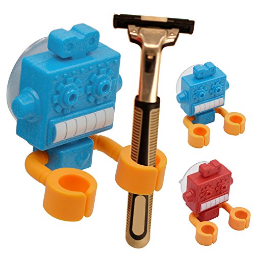Kangkang@ Multi-functional Silicone Suction Cup Cartoon Robot Plug Hanger Pen Toothbrush Holder Toothbrush Rack Bathroom Storage Set (blue)