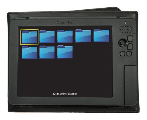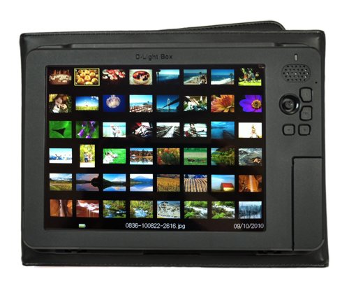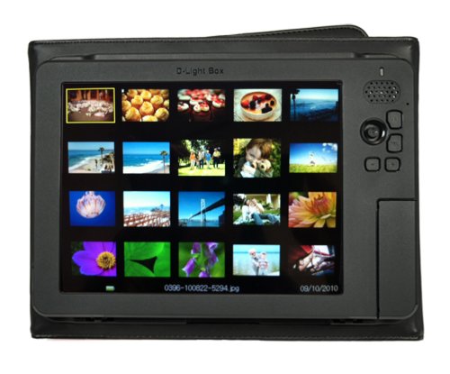 - Feature : 8-Inch 800 x 600 high-resolution digital LCD with 4:3 aspect ratio - 4 GB internal flash memory and supports SD, SDHC, microSD, MS, MS PRO, MS Duo, and USB flash drive / Comes with soft leatherette album case for elegant presentation professional portfolio and built-in kickstand for easy display option / Full folder structure for easy photo management with folder name and thumbnail photo preview - Automatic photo slideshow with adjustable time interval / Over 6 hours of battery life on rechargeable battery - Ideal for passing around while sitting on a living room sofa or at a business presentation / Designated Music Box folder on the Internal Memory of D-Light Box gives you the option to always play the set of music files you saved in the Music Box folder with your photo slideshow