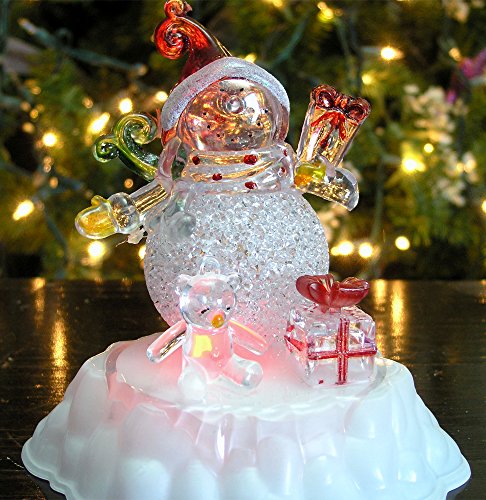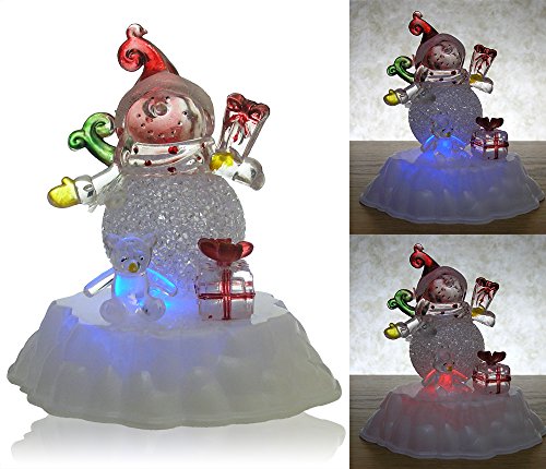 LIGHTED SNOWMAN STATUE. Beautiful clear acrylic sparkling snowman. Color changing LED lights makes this snowman statue the perfect addition to your Christmas decorations this year. Set this Xmas decoration in on
