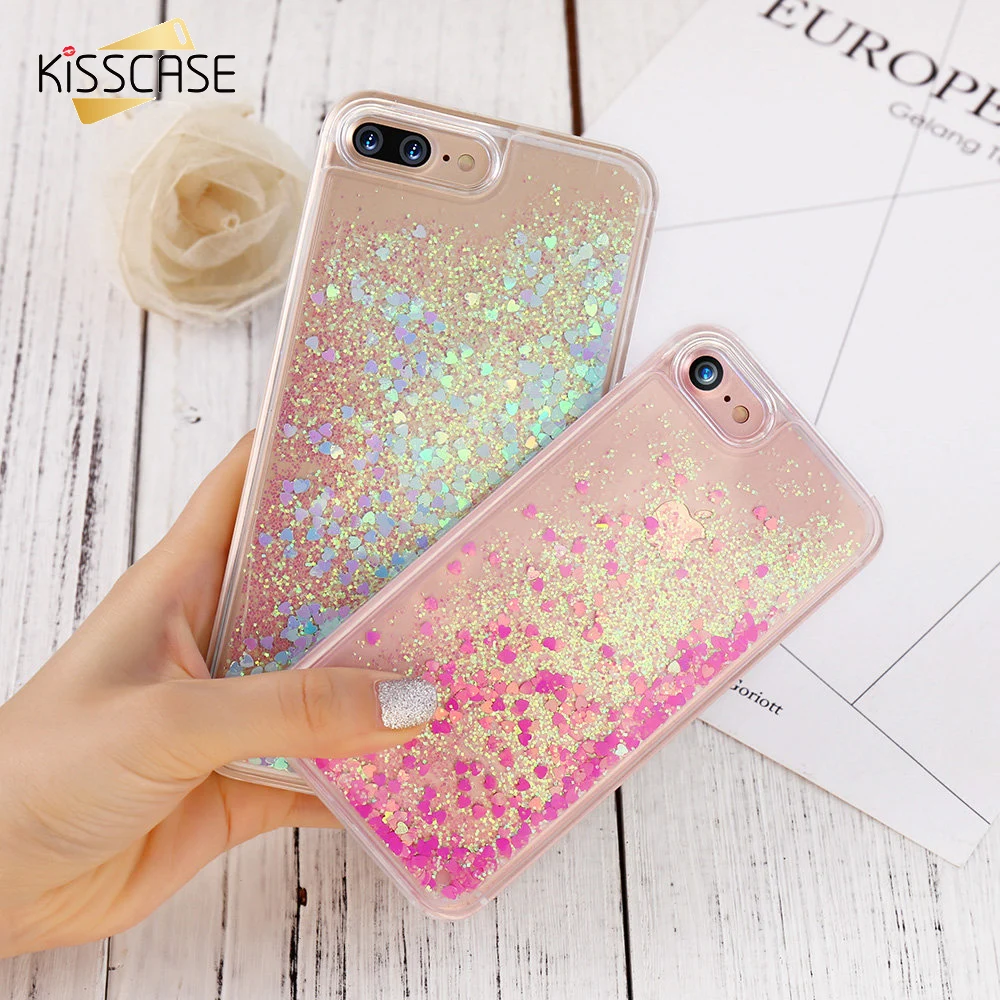 Product:KISSCASE Shiny Love Heart Quicksand Case Capa Shell Coque