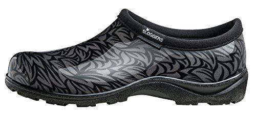 Studio : Sloggers Publisher : Sloggers Binding : Lawn Patio Product Description You're probably familiar with our Sloggers brightly colored floral Prints. But what if you're looking for something a little more boring... but still fun! - enter our made in the USA - rain garden shoes in Casual floral Prints. Whether you're working in the garden, running errands around town on a rainy day, or just out walking the dog in the morning dew, you'll feel comfortable secure in these fun, waterproof shoes. They included our exclusive "All-Day-Comfort-Insoles", the main reason why Sloggers boots shoes receive such high comfort praise, our signature "Deep-Lug-Tread" for excellent traction in water mud. We use a Soft, flexible upper material made from odorless, medical grade, 100% recyclable plastic, our soles contain up to 50% recycled material Sizing info: half sizes order up, for a "perfect fit", order our Half-Size Cut-To-Fit Insole (style 330BK) to make any Sloggers boot or shoe 1/2 size smaller. Proudly made in the USA from 100% recyclable material, when they are all worn out, return them to us we'll make them into another shoe! how is that for "reuse recycle". for more information on our recycling program, please visit our website. 0