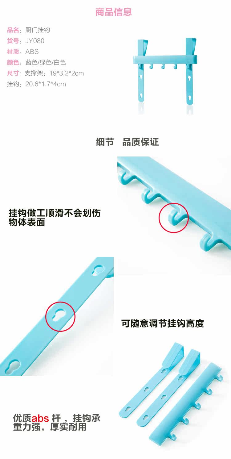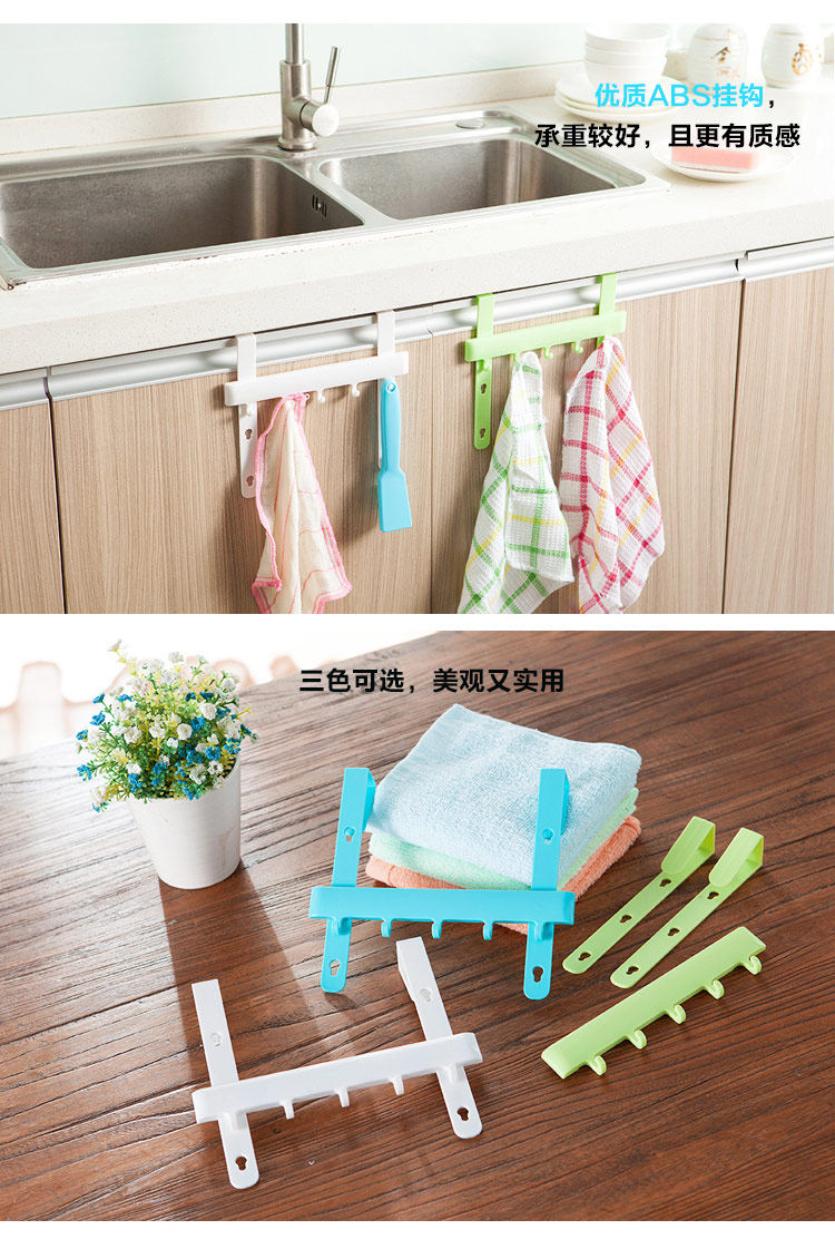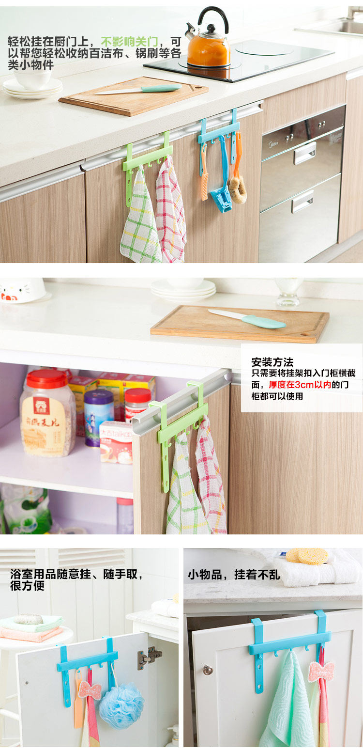 多功能厨门5连挂钩 橱柜毛巾抹布围裙无痕免钉挂架