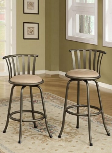 -. Title : Set of 2 slatted back adjustable height swivel bar / counter height stools with padded seat
