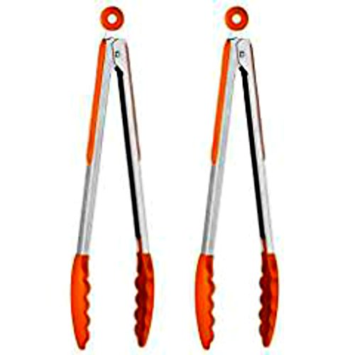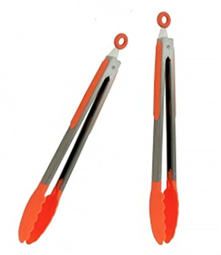 Kitchen Salad Serving Tongs Orange Plastic Grips (Set Of 2)