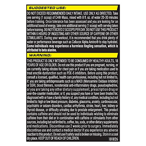 -. Title : Cellucor C4 Mass Pre Workout Supplement Muscle Builder, Icy Blue Razz, 35.97 Ounce, 3 Count