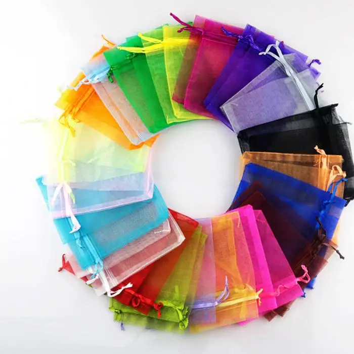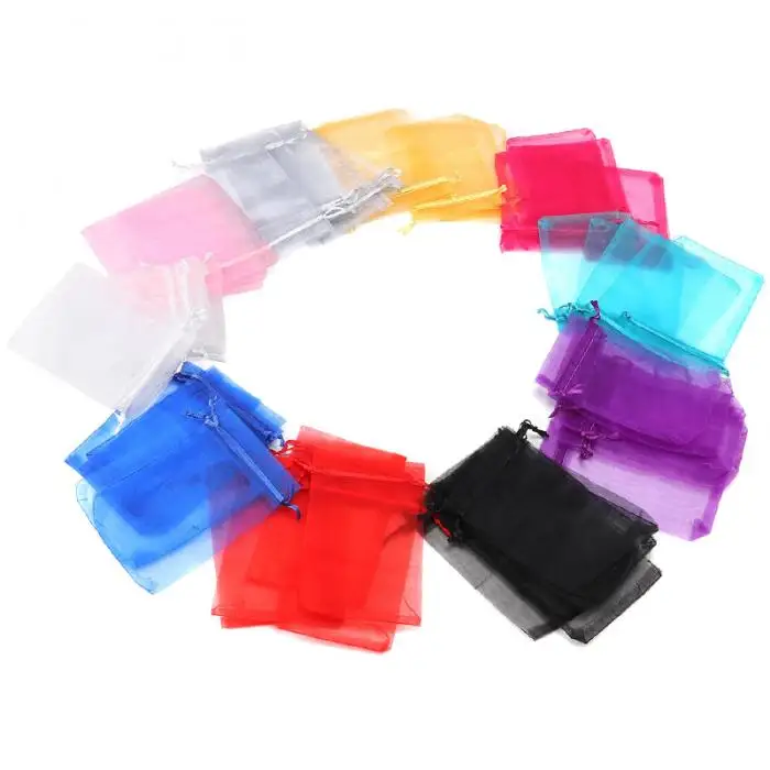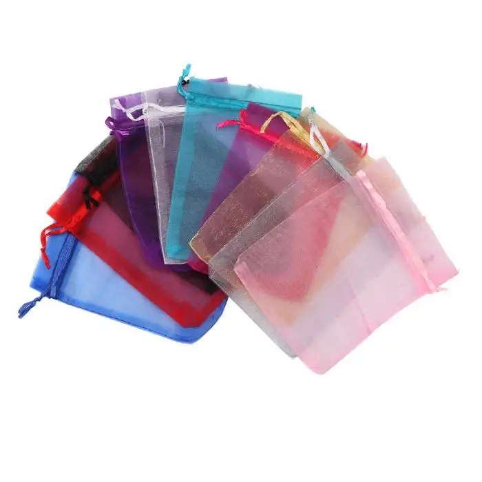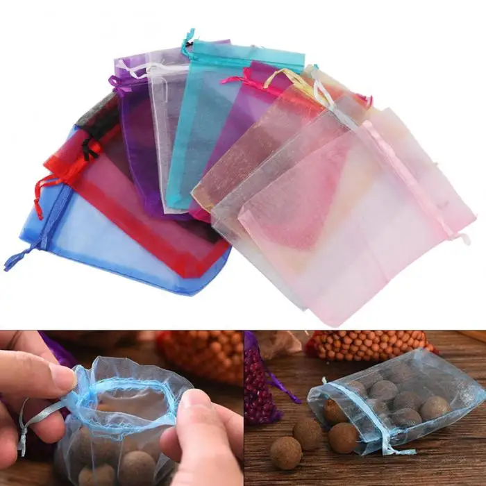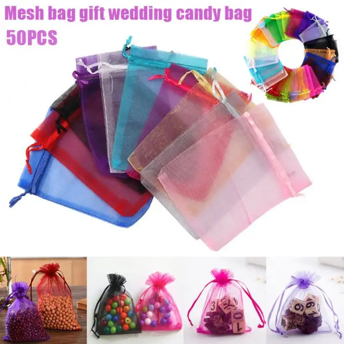 50pcs Candy Pouches Bags Transparent Mesh Organza Gift Drawstring Bags for Wedding Gift 2018ing