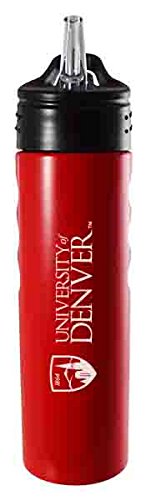 University of Denver-24oz. Stainless Steel Grip Water Bottle with Straw-Red