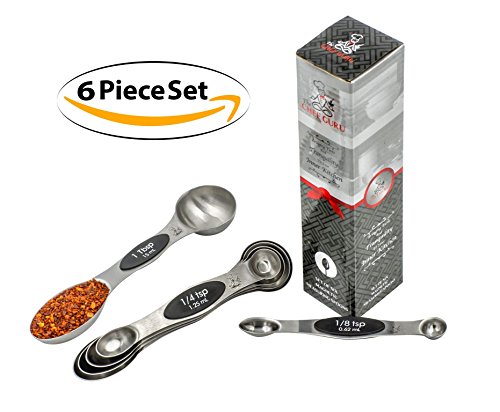 - ✔THE FIRST AND ORIGINAL VERSION! ➪ The Chef Guru 6-piece magnetic measuring spoon set is our proprietary design. Unlike others, we only use the highest quality materials, and only work with the best production teams. All of our spoons are individually engraved with The Chef Guru logo. No imitation/counterfeit spoons can match our high standards, safety, ethics and commitment to excellence. Do not accept anything but the original best.