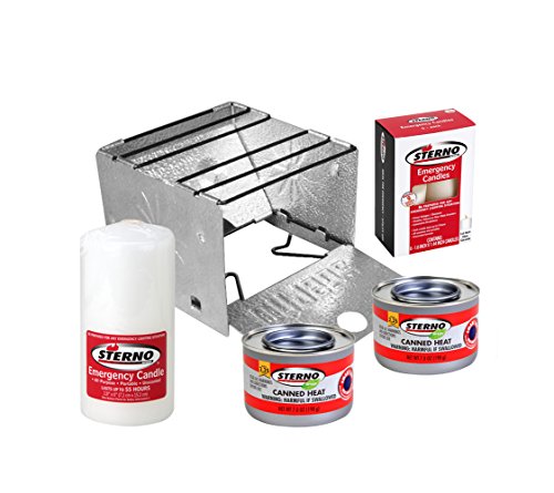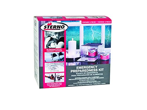 Studio : Sterno Publisher : Sterno Binding : Kitchen Product Description The Sterno 70156 Emergency Preparedness Kit is ready for any emergency including power outages, natural disasters or auto breakdowns. This kit includes a foldable stove, (2) 7-ounce cans of Sterno cooking fuel and (4) unscented candles. Each candle provides 7 hours of light and can be used as refills in various candle lamps. The (2) cans of cooking fuel burn for a total of 4 hours. For over 100 years the Sterno name has been synonymous with quality and performance in home entertaining, camping and emergency preparedness. Today Sterno delivers the most comprehensive line of portable warming, emergency illumination, butane appliances and catering products to the retail market. We share our customers’ commitment to the environment and continually strive to improve our manufacturing and marketing practices to reduce our impact on the earth. Our iron-clad commitment to excellence ensures perfect performance every time. 0