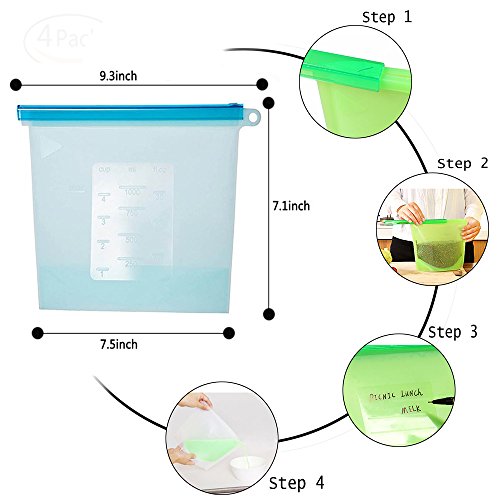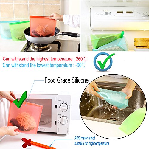 - Hot & Cold Resistant – A hermetic seal keeps foods fresh longer and reusable silicone food bags can be steamed, boiled, stored in the freezer, or used in the oven or microwave!