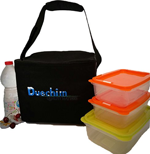 Deuchim-Large Durable Cooler Bag - Insolated Lunch Box - For Men, Women and Kids, With Adjustable Sholder Strap. For Work, Picnic, Camping and Trips. Black + GIFT