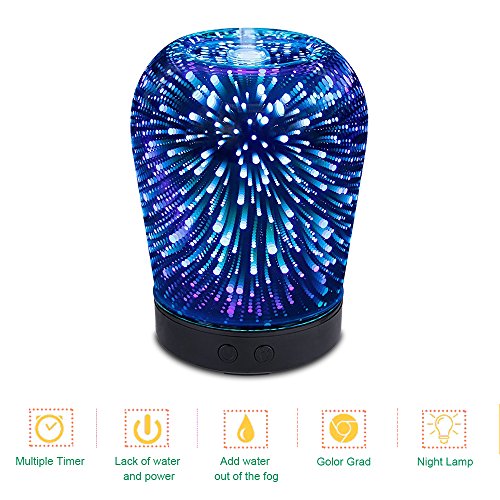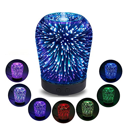 PinPle Humidifiers for Christmas / Halloween Gift Aromatherapy Essential Oil Diffuser with 7 Color 3D Glass LED Night Lights for Bedroom / Bady Room / Yoga / SPA