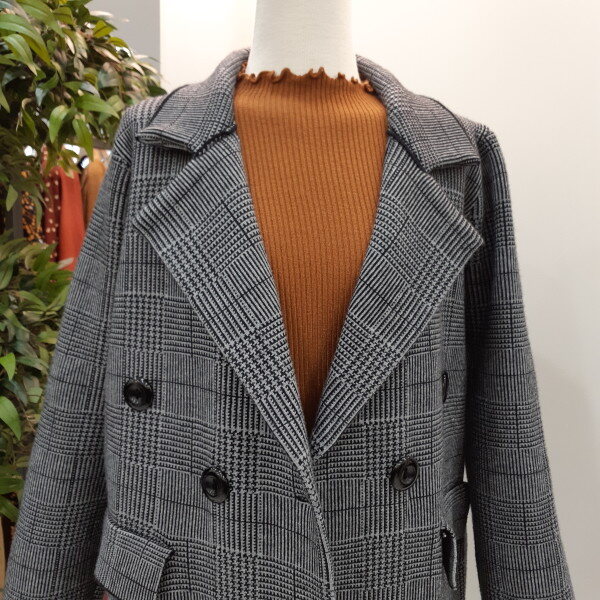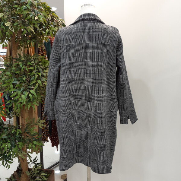 천안모다아울렛 멜로디가든2018년 가을 신상품 니트 체크 자켓입니다 하프 길이고 니트소재로 신축성이 좋아 편안하게 착용하시기 좋고여성스럽게 캐쥬얼하게 코디하기 좋은 스타일의 자켓입니다