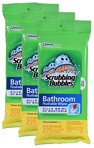 -. Title : Scrubbing Bubbles Antibacterial Bathroom Flushable Wipes QFyEx, 28 Count, 3Pack