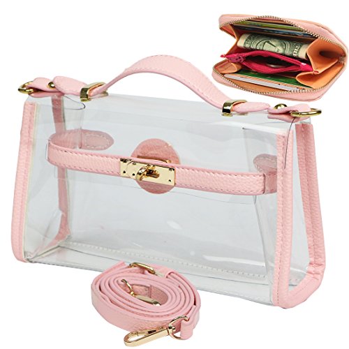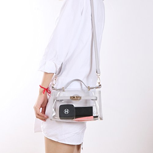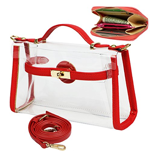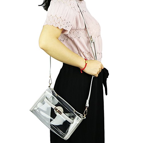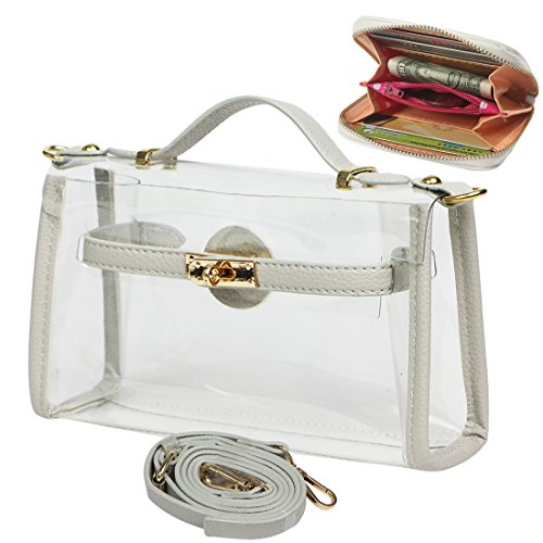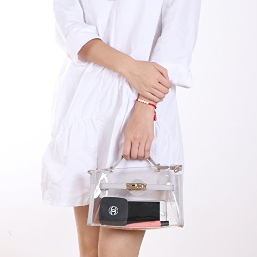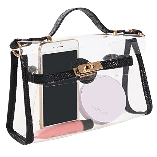 Product Description Finally a clear bag that is small and stylish. Most clear bags in the market is big and bulky totes, but with kilofly Transparent 2-in-1 Clutch Shoulder Bag, you can now flaunt your cute stylish clear bag at work, concerts, and all the places where only clear-bags are allowed. Moreover, no more worries on food stains or makeup grains, this lovely bag is easy to clean inside and out and protects your valuables by keeping them dry. Its waterproof design is also perfect for a trip to the beach and on rainy days. Straps are adjustable and removable - This way you can wear it as a shoulder bag, crossbody bag or simply as a clutch.