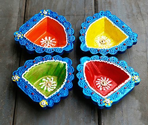 This set of 4 diyas has been handmade from clay by skilled artisans from India which ensures its durability.