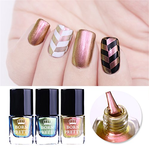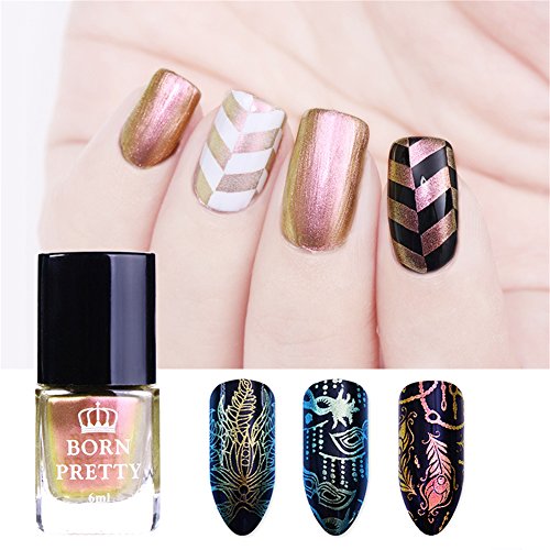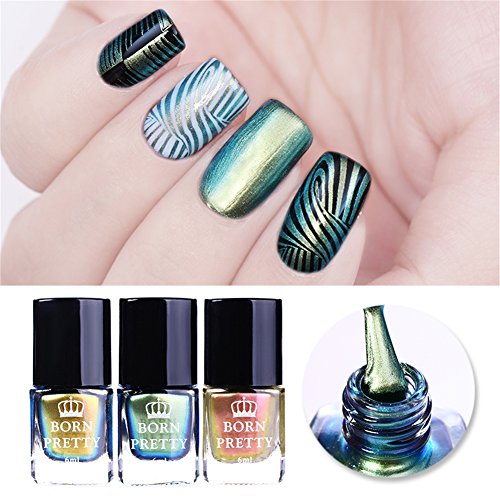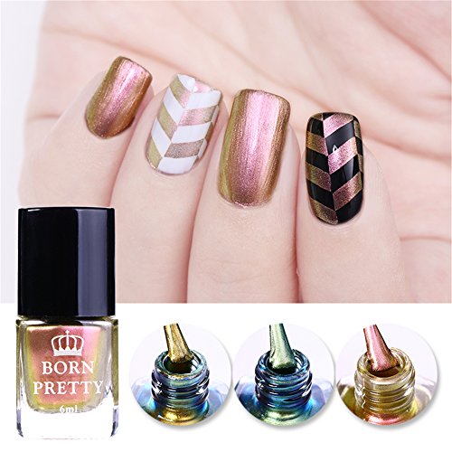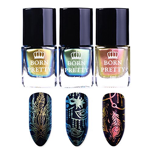 Brand Introduction: We are BornPretty .The original inspiration of the name born pretty comes from proverb Each woman is Born Pretty. Combining the aim of providing beauty items to the female,we incorporated it into the name Born Pretty. Be Aware: The product is shipped from China, usually takes 1-3 weeks to arrive. There might be risk of losing package in transit, once it happens please contact us FIRST and we will solve the problem for you as soon as we receive your contact. Specification: Quantity:3 Bottles Capacity: approx. 6ml Color: As the picture shows Package Contents: 3 Bottles 6ml BORN PRETTY Stamping Polish Instructions: Specification: Quantity:3 Bottles Capacity: approx. 6ml Color: As the picture shows Package Contents: 3 Bottles 6ml BORN PRETTY Stamping Polish Instructions: 100% brand new and high quality. Dry fast. Attractive Color. Special nail polish for nail art stamping and printing colors.(you can also use it as regular chameleon nail polish) Different base colors show different colors.(black base color recommended but not required) 0