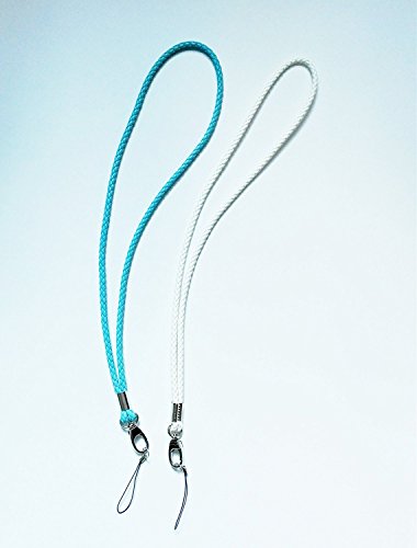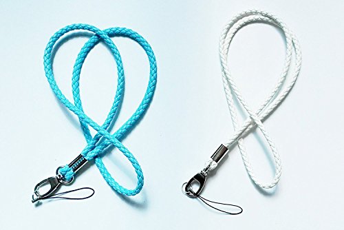 Fashion Braided PU Leather Necklace LANYARDs Keychain for key, ID holder, Cell phone, USB, or Camera ---2 Pack(White and light blue)