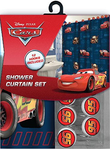 All New Fabric Shower Curtain Set Disney with 12 Matching Hooks (Cars)
