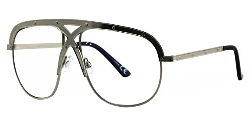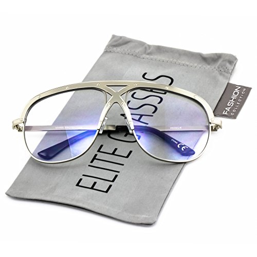 Elite XL Vintage Retro Oversized FULL Metal Aviator Clear Lens Mens Womens Sunglasses