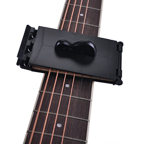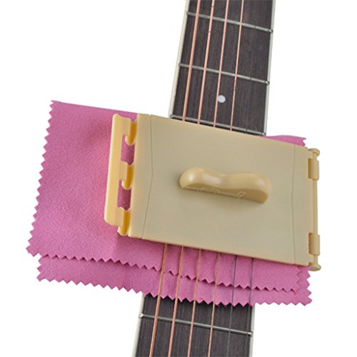 Description: It removes all the funky oils, gunk and dead skin from your strings in seconds, provides an unprecedented 360 degrees of string cleaning action This nifty device clamps onto your strings and with just a couple of swipes up and down cleans them like new Debris stays in the special hand-washable microfiber cloth You'll keep your strings sounding brilliant and spare yourself aggravation Extends the life and preserves the tone of guitar strings Material: Cloth and Plastic Guitar Chord Size: 11 x 6.5 x 0.9 cm