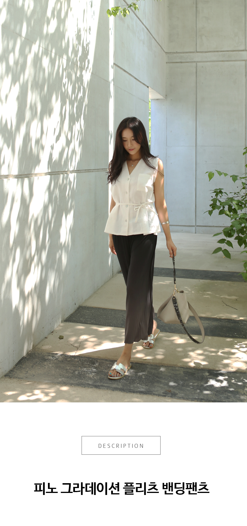 편안한 밴딩과 시원한 플리츠소재로 사이즈에 크게 구애받지 않고 연령대에 상관없이 입는 팬츠로 고급스러운 색감이 눈에 띄는 팬츠에요