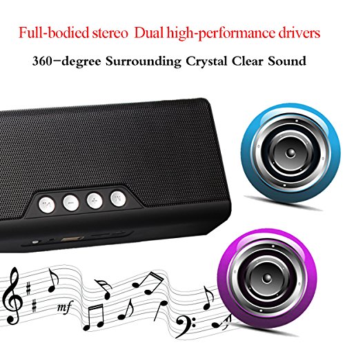 Title : Bluetooth Speakers, Gaosa Powerful Bluetooth Speaker Stereo Sound with Enhanced Bass,Power Bank, Crystal Clear Sound, Dual drivers, Long Battery, AUX Port, TF Card-Black