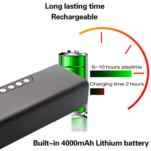 Feature : MODERN DESIGN:The sides are rubberized so that you can lay it down on the sides without damaging or scratching it up. On the bottom of the speaker there are 4 thin "feet" to keep the bottom of the speaker from laying directly on the surface it's placed on. The rest of the speaker is cellular design that emits crystal clear music with dual drivers. / CRYSTAL CLEAR SOUND:Full-range listening experience, full-bodied stereo, dual high-performance drivers and a punching bass port. Less than 1% total harmonic distortion ensures enhanced clarity and fidelity.Access your music files wirelessly from a distance as far as 33 ft whether you're lounging around the house,or partying,walking out,camping,hiking. / LONG BATTERY LIFE: With 4000 mAh built-in Lithium battery, you can enjoy 8 hours of non-stop music at 80% volume, three times longer than similar-sized portable speakers. Recharge in 2 hours using the included Micro USB cable. / WIDE COMPABILITY: You can pair the Gaosa speaker fast and easily with almost any cellphone, laptop, tablet device that is Bluetooth enabled to enjoy wireless music. Besides, with the AUX audio cable, you can access to MP3, MP4, Radio players and media devices. And it comes with a "camera mode" which it lets you control an attached video camera. / MOBILE POWER BANK: Like an external battery, it has the charging function, it can charge your mobile phone(only for Android) in case of emergency.