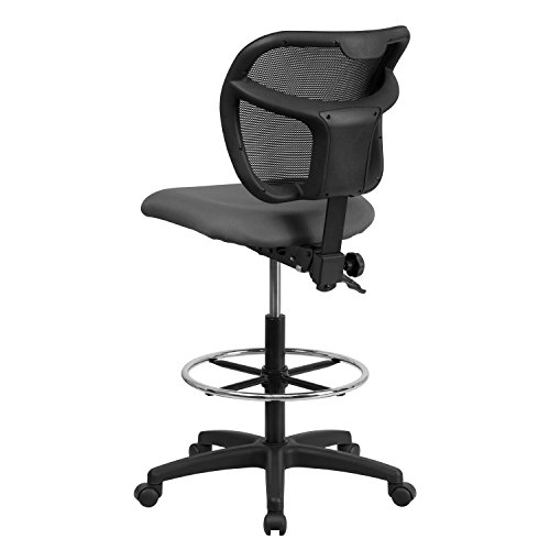 -. Title : Flash Furniture Mid-Back Mesh Drafting Stool with Black Fabric Seat