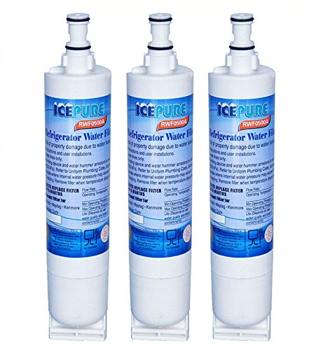 3 pack special! specifications: material: nsf coconut shell activated carbon; micron rate: 0.5 micron operating temp.: 39-125 degrees Fahrenheit max. operating pressure: 20-120psi flow rate: 0.8 gpm filtration life: 6 months/400Gal depends on water quality and level of contaminants. rfc0500a water filter replacement. this icepure water filter compatible with refrigerators that use any of the following part numbers: whirlpool: 4396508 4396508P 4392857 4396509 4396918 4396163 4396510 4396510P 4396562 4392857 4392857R 4392922 4396501 4396563 821491 2186444 2200203 2203220 22033980 2255518 2255520 2305766 2305767 2305768 4396918 wf-l400 WFL400 L400 wf-l400v wfl400v l400v wf-l500 WFL500 L500 wf-lc400 WFLC400 lc-400 LC400 wflc400v wf-lc400v wf-lc500 WFLC500 wf-nl250 WFNL250 NI250 wf-nl250v wfnl250v nl250v wf-nl300 WFNL300 NI300 wf-nlc250 WFNLC250 NLC250 nlc-250 wf-nlc250v wfnlc250v wf-nlc300 WFNLC300 NLC300 kitchen aid: 4396547 4396548 4396163 4396164 4396509 4396509P 4396918 2203221 2255709 sears: NL300 wf-nl300 46-9902 9902 Kenmore: 46-9010 46-9908 46-9902 9910P 9908P 9902P 0460991000 0460990800 469902000 Brita: wprf-100 thermador: 491849 4396510 46-9010 8212652 W10186668 WF285 2186444 04609902000 09010 223764 2255519 229346 4392857R 4396508T 4396510P 4396510T 46-9010p 4609010000 4609908000 46195022000 46195022077 46195023294 461951401681 469010 469010P 469902 469908 481281720000 481281728986 643898 6508 6510 8212491 9010 9010P 9908 AFF5 AP3182816 AP3182817 AP3672633 ksz6t9500 l400v lc400v NL240 nl240v NLC240 nlc240v pl400v pnl240v PS879461 PS896755 sgf-w01 sgf-w80 wf-285 wf-nlc240 wf-nlc240v WFNL240 wfnl240v WFNLC240 wfnlc240v WPRF100 pwf-l400v pwf-nl240v wf-300br wf-nl240 wf-nl240v wfl400v sgf-w01 wsw-2.Feature
