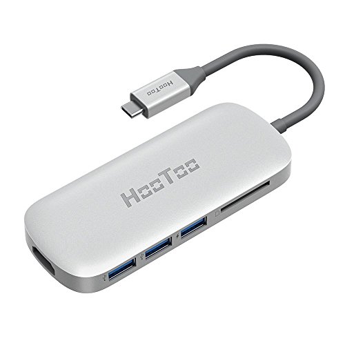 USB C Hub, HooToo USB C Charger USB C to USB 3.1 with Type C 100W Charging Port, HDMI Output, Card Reader, 3 USB 3.0 Ports - Silver