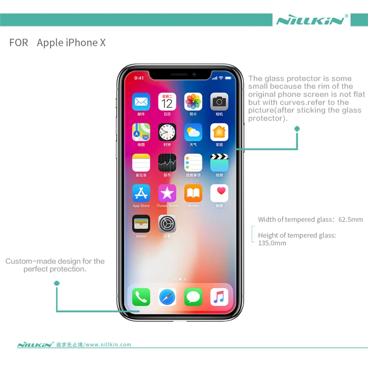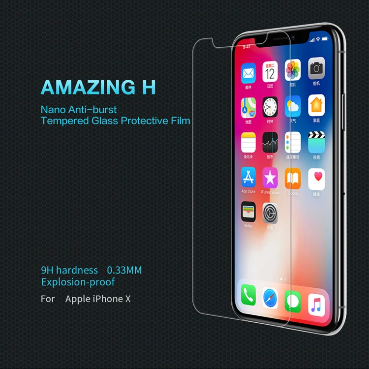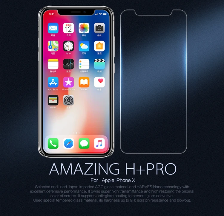 Feature 1:Nillkin Tempered Screen Glass Film for iPhone X 8 7 6s 6 Plus
