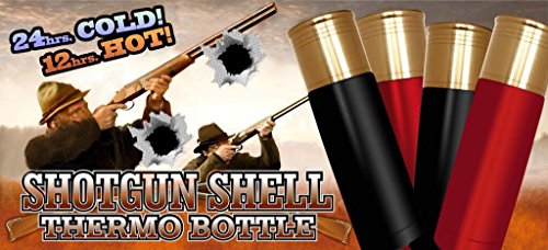 12 GA Shotshell Thermo Bottle Double wall 18 8 stainless steel insulated constructio Keeps drinks hot for 12 hours or cold for up to 24 hours insulated cap One touch stopper Wide base cup is tip proof Black 25 ounce 3 cup capacity