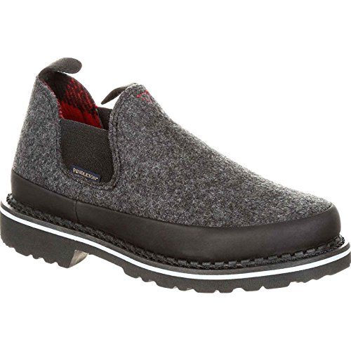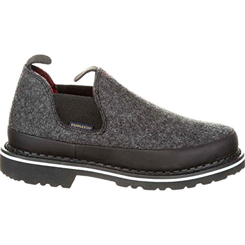 Studio : Georgia Publisher : Georgia Binding : Shoes Product Description The Georgia Boot tradition is making quality comfortable footwear that stands up to the rugged conditions of the jobsite. Georgia Boot knows that any environment a kid is in becomes their jobsite so durability is of utmost importance in their footwear. The upper is comprised of charcoal grey Pendleton wool outlined with black leather. A layer of 3M Scotchgard shields against water and oil spills. The inside is lined with red and black Pendleton wool and has a removable insole. Crafted with a notched Goodyear welt construction, the bond between the upper and outsole on this shoe is incredibly strong. It has an EVA midsole and steel shank for added support. The polyurethane outsole is both oil and slip-resistant. These Georgia Giant Kids Pendleton Romeos were built to last and will surely keep their feet warm all winter! 0