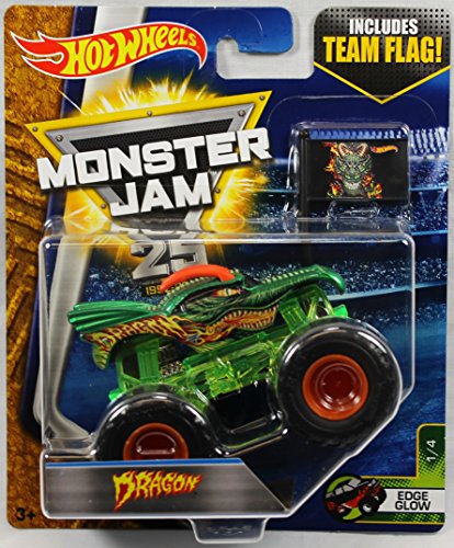 -. Feature : Hot Wheels Monster Jam Truck - Dragon / Includes Team Flag / 1:64 Scale / Edge Glow #1/4 / Collect them all