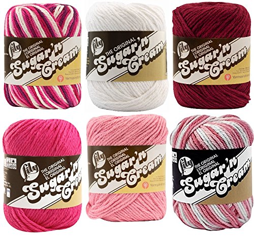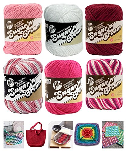 - Price is for 6 assorted skeins of Lily Sugar'n Cream as shown plus Patterns: Getting Things Done Tote, Brick Stitch Dishcloth, Color Changing Dishcloth, Over the Rainbow Dishcloth, and Mod Gingham Dishcloth. This assortment includes White, Rose Pink, Wine, Hot Pink, Love and Strawberry.