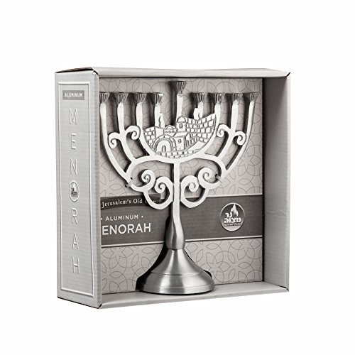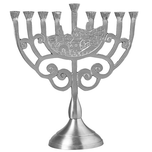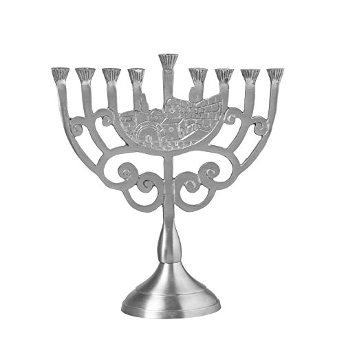 Artistic Aluminum Candle Menorah - Fits all Standard Chanukah Candles - Ancient Jerusalem Design - by Ner Mitzvah