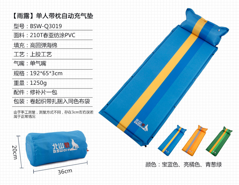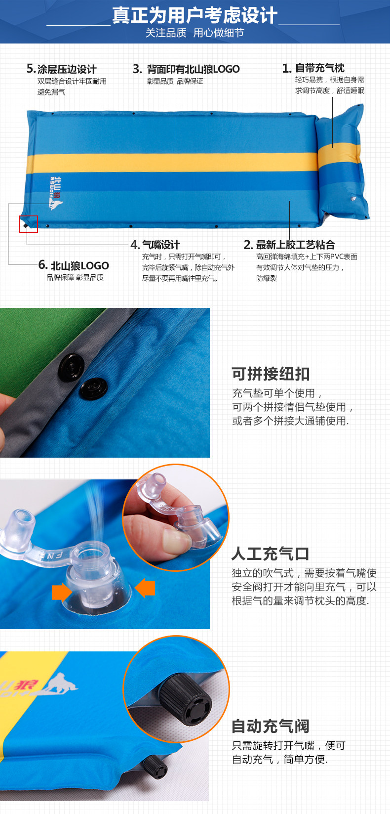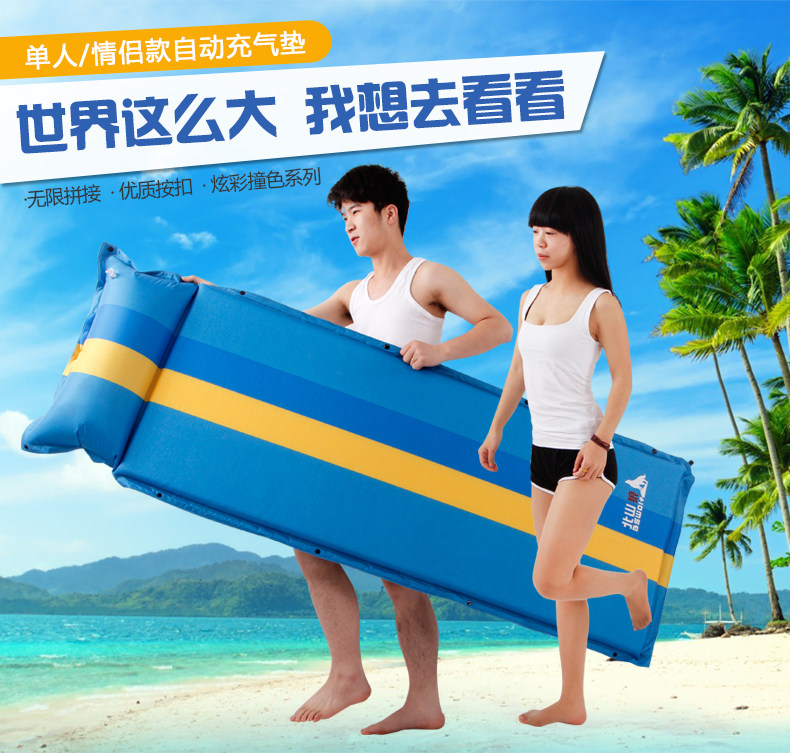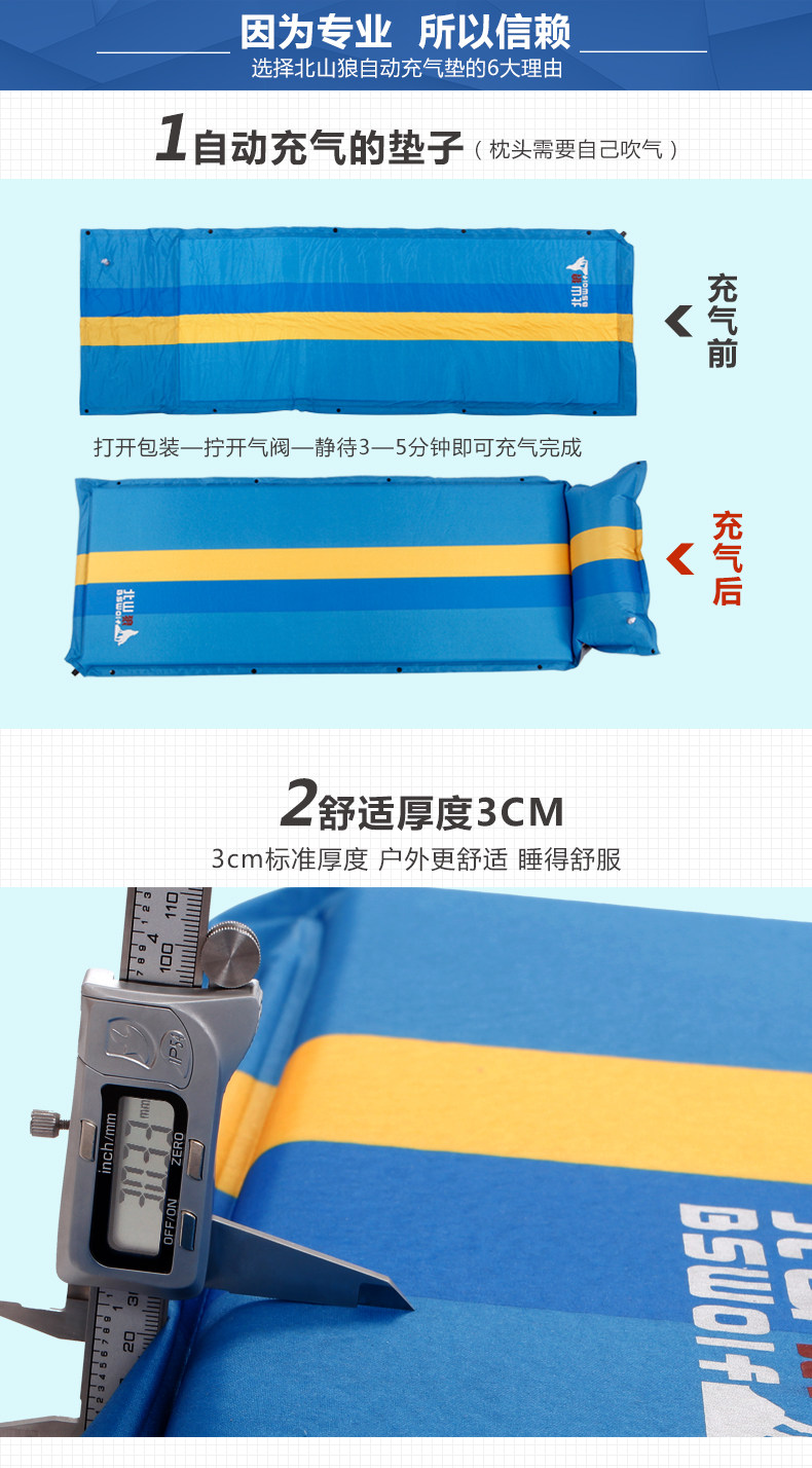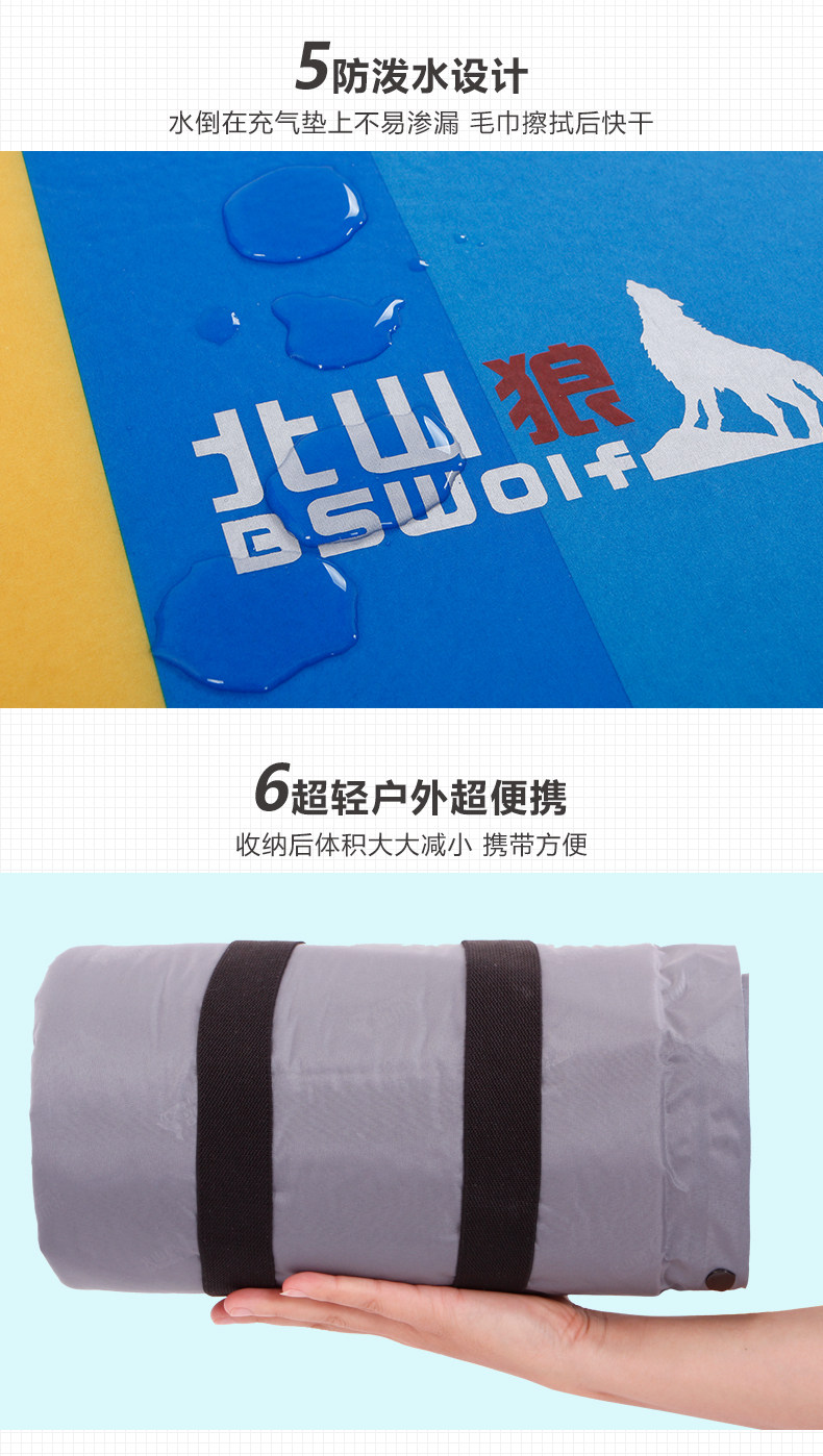 北山狼户外单人自动充气垫露营睡垫加宽加厚防潮垫可拼双人帐篷垫