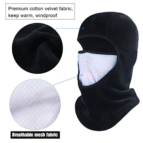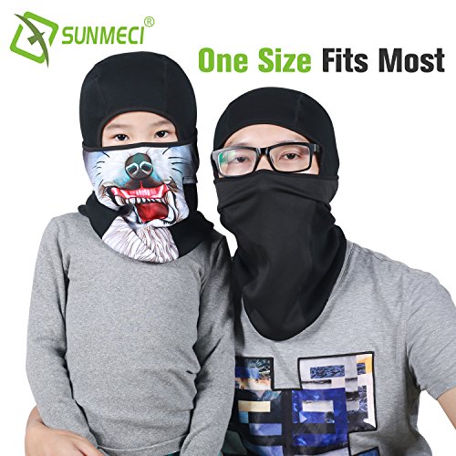 -. Feature : VERSATILE BALACLAVA: This stretchy balaclava is versatile, it can also be used as face mask, neck gaiter, cap, pirate hat, worthy deal and save your money. One size fits both adults and children / PREMIUM COTTON VELVET WARMER: Made of super soft fabric, excellent keep warm effect, more comfortable and windproof. With it, no worry about the cold weather anymore / HIGH QUALITY SEWING: This balaclava is tough and durable as you can see, four needles six lines sewing craft makes it stronger, can be used for years / SMART FACE MESH DESIGN: The fabric on the face is defferent, it is some kind of mesh faric which will make you more breathable. Also, it can be moved easily to your chin to show your face / QUALITY ASSURANCE: We produce all the SUNMECI® products by our own factory with advanced machines, all products will be tested several times before selling, no hassle, no worry about the loss