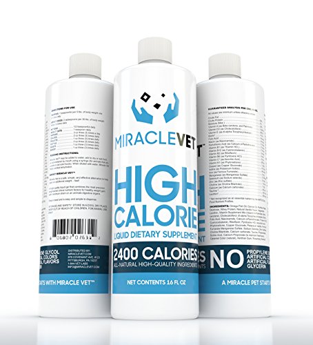 Miracle Vet All-Natural Weight Gainer. This concentrated energy gel is a protein & nutrient powerhouse that helps any dog gain weight safely & effectively! HIGH IN CALORIES: 2,400 calories per 16 oz. ALL-NATURAL: Helps your dog gain weight safely & effectively EASY TO USE: Can be fed with a syringe, added to water, or added to food WORKS FAST: Adds healthy weight to your dog faster FOR DOGS & CATS: suitable for both dogs and cats ages 4 weeks and older. ALL-NATURAL: No artificial colors, flavors, or preservatives.