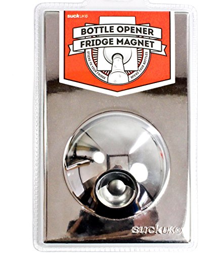 Studio : Suck UK Publisher : Suck UK Binding : Kitchen Product Description Suck UK Fridge Magnet Bottle Openers - never look for a bottle opener again! Modern home accessories don't get much better than this; the Bottle Opener Fridge Magnet is enormously practical and attractive to boot - this funky bottle opener is always to hand and immediately blends with your contemporary kitchen interior. The underside of the Bottle Opener Fridge Magnet is covered by a non-scratch super strong rubber magnet to ensure that it always stays safely on your fridge whilst you are taking care of all your bottle opening needs! The Fridge Magnet Bottle Opener comes in 3 different designs - stainless steel chrome, bright shiny red and shiny white. 0