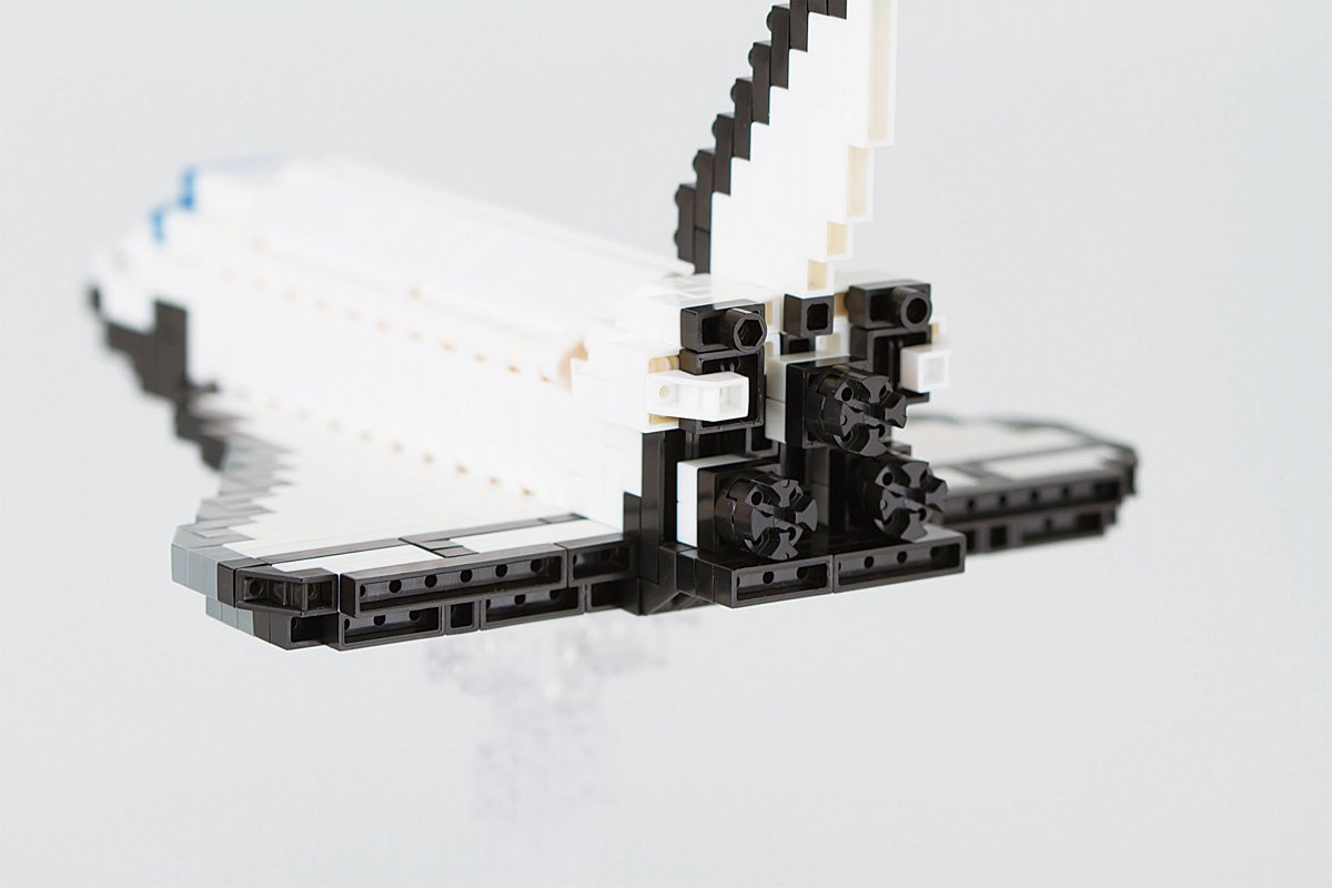 Shuttle launch pad with fuel tank installed state and flight condition with astronaut and satellite can be reproduced by shuttle replacement.