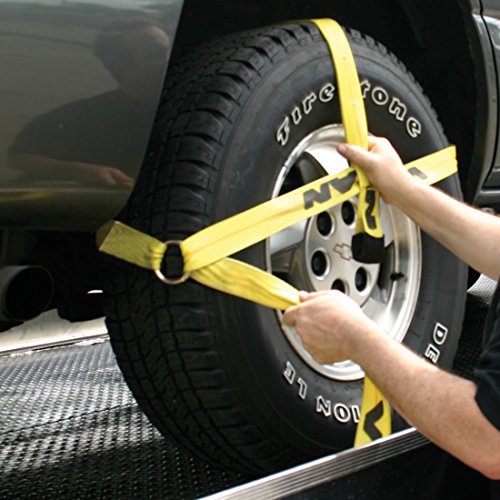 UNIQUE DESIGN ADJUSTS TO FIT ALMOST ANY TIRE - These tire harnesses are designed for hauling any vehicle on a flat bed, they allow the vehicle to ride on its own suspension to eliminate shock transfer, and the adjustable basket style harness fits snugly around the tire, and is able to haul almost any tire on a car, SUV or light truck by using the special pocketed cross strap for precise adjustment.