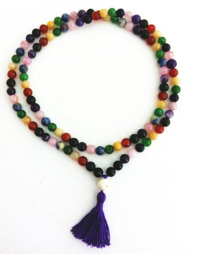 -. Feature : Helps to balance chakras / Assists in meditation and yoga / 108 beads is traditional number of chants or prayers to perform / Beautiful stones correspond to the chakra colors. / Beautiful!
