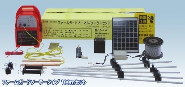 | セット内容 | 本体(ノーマル) 出力コード(本体接続用) アース棒(2連/本体用) テスター(電気量点検用) 危険表示板(5枚) 本体取付金具 バッテリー12V4.5A コントローラー ソーラーパネル ファームコード(200m巻き) ゲートセット出入り口専用(2セット) ファームガイシ(50個) FRP支柱(25本) 取扱説明書 保証書(1年) |