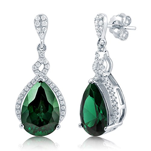 -. Title : BERRICLE Sterling Silver Simulated Emerald Cubic Zirconia CZ Teardrop Fashion Dangle Drop Earrings